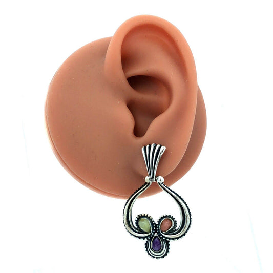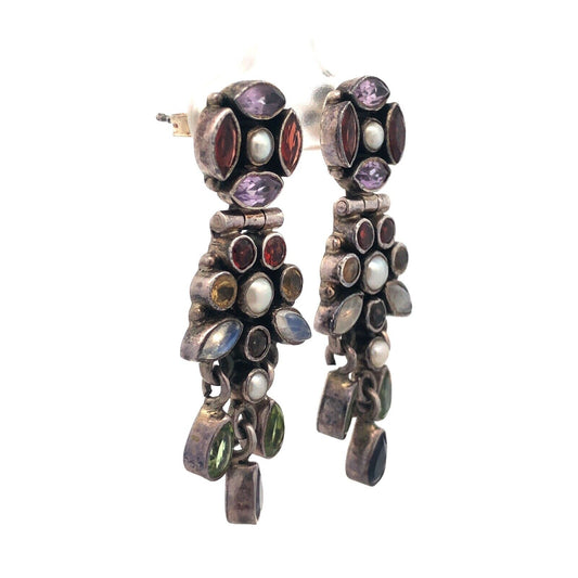 Native American Carolyn Pollack Sterling Silver Multi Gemstone Dangle Earrings