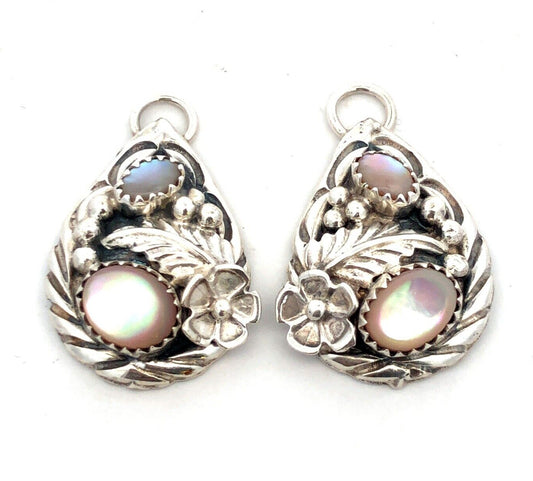 Native American Sterling Silver Mother of Pearl Floral Earring Enhancer Jackets