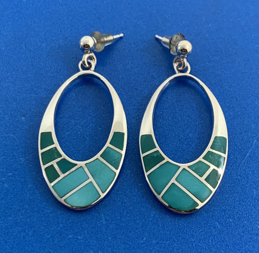 Tomo Turquoise Inlay Cutout Modern Oval 925 Sterling Silver Dangle Studs