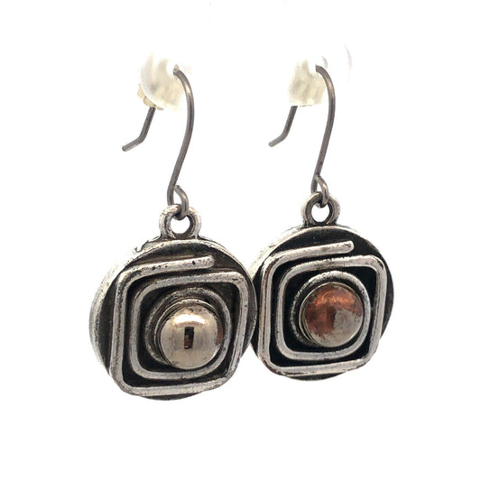 Vintage 925 Sterling Silver Gold Vermeil Two Tone Swirl Round Dangle Earrings