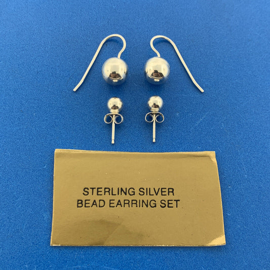 Designer 925 Sterling Silver Ball Bead Earring 2 Pair Set New With Tag