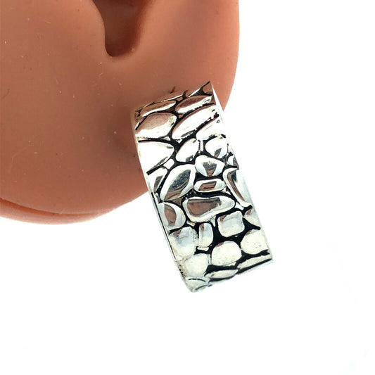 Designer HDB Mexico 925 Sterling Silver Pebbled Cobblestone Wide Hoop Earrings