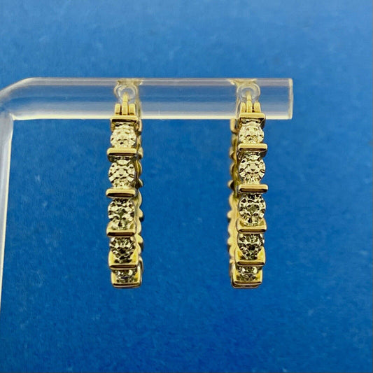 Designer 925 Sterling Silver Vermeil Two Tone Diamond Round Hoop Earrings