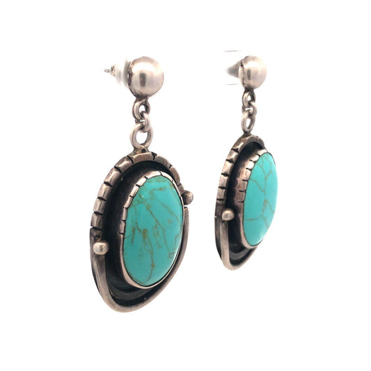 Modernist HOB Mexico 925 Sterling Silver Turquoise Statement Dangle Stud Ea