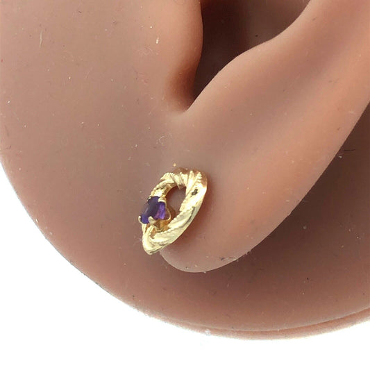 Gorgeous 14k Yellow Gold Amethyst Open Heart Stud Earrings w/ Friction Backs