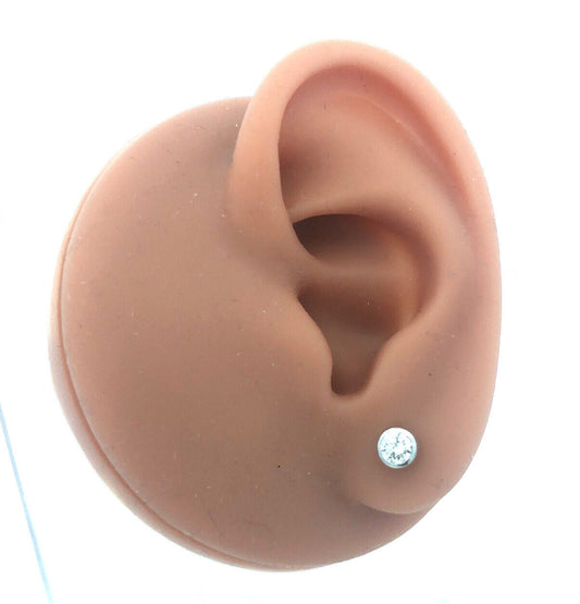 14K White Gold Round Diamond Solitaire Bezel Stud Earrings