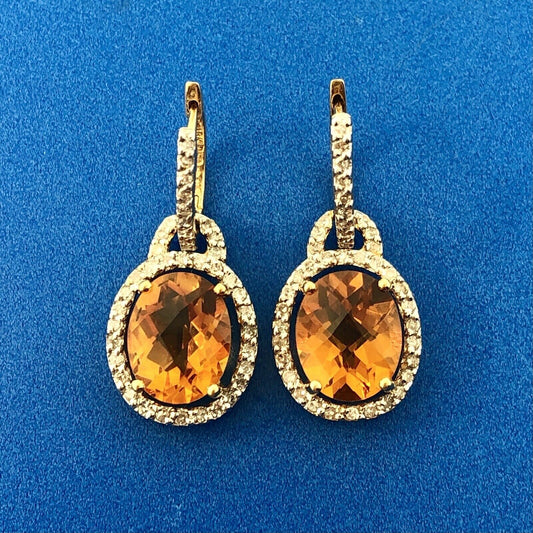 Estate KA 18K Yellow Gold Oval Citrine Diamond November Anniversary Earrings