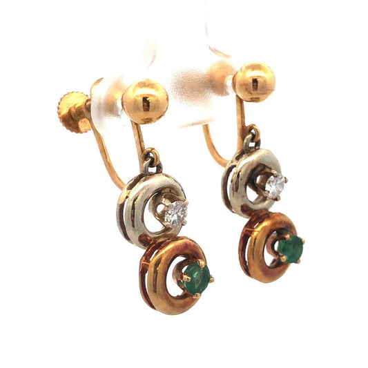 Naomi 14K White Yellow Rose Gold Diamond Emerald Drop Dangle Screw Back Earrings