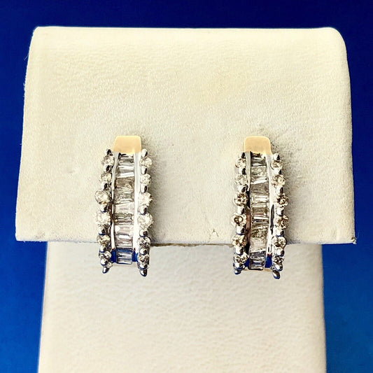 14k Yellow & White Gold Baguette Diamond Earrings with Diamond Accents
