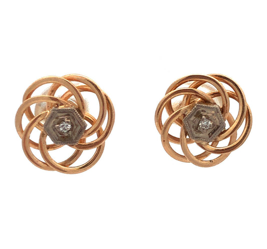 Designer 14K Yellow Gold Diamond Spiral Modernist Floral Statement Stud Earrings