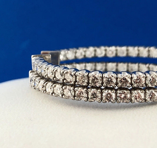 14K White Gold 2ctw Natural Round Diamond Inside Outside Hoop Earrings