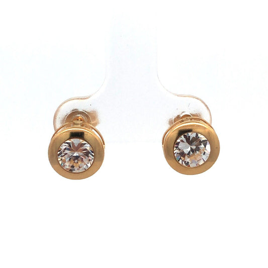 Designer DDC 14K Yellow Gold Round Cubic Zirconia CZ Solitaire Stud Earrings