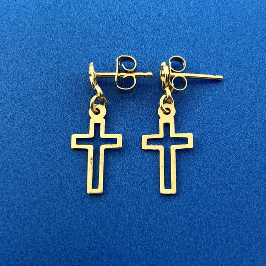 Retro 14K Yellow Gold Cross Cutout Religious Communion Dangle Stud Earrings