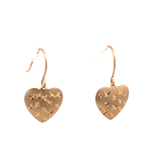 Designer JCM 14K Yellow Gold Textured Heart Love Hook Dangle Earrings