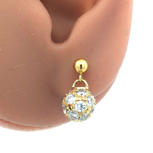 14K Yellow Gold Cubic Zirconia CZ Disco Ball Statement Drop Dangle Earrings