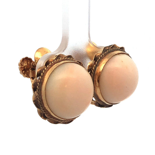 Vintage 14K Yellow Gold Round Coral Twisted Scroll Screw Back Clip Earrings