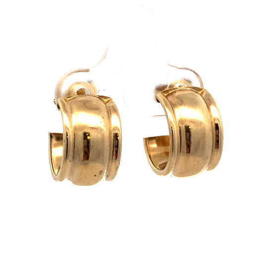 14K Yellow Gold Designer Statement Fluted Textured Round Huggy Hoop Earrings