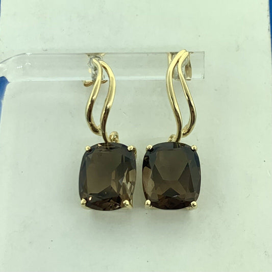 Designer 14K Yellow Gold Oval Smoky Quartz Modernist Twist Dangle Earrings