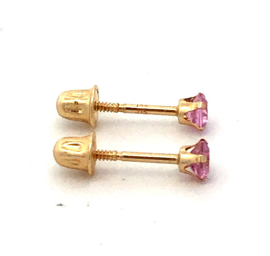 14K Yellow Gold Designer JTS Round Pink Cubic Zirconia Solitaire Stud Earrings