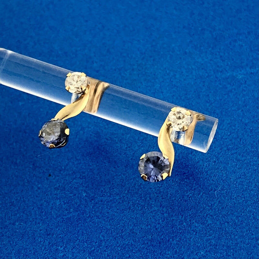 Lovely 10k Yellow Gold Round Cut Blue Purple Sparkling CZ Stud Earrings