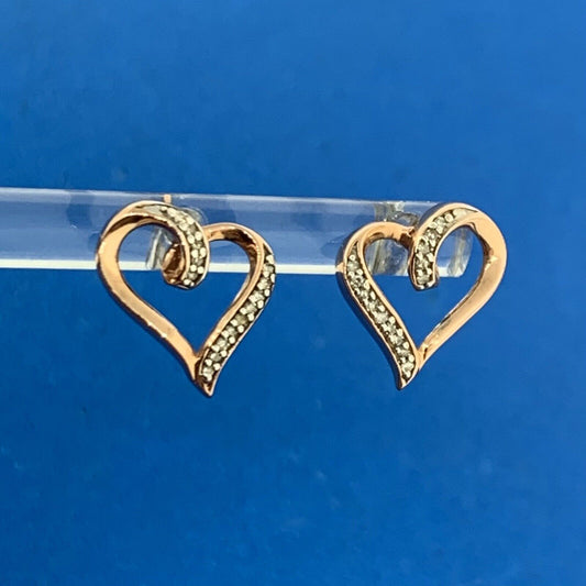 Designer 10K Rose Gold Diamond Open Heart Stud Earrings