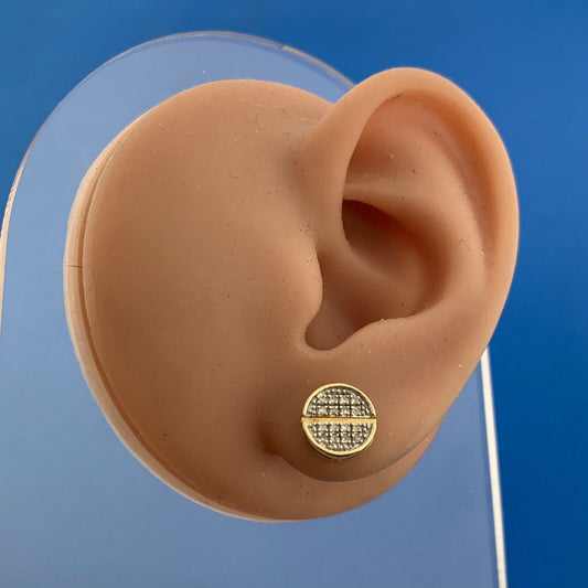 Designer 10K Yellow Gold Round Cubic Zirconia CZ Statement Stud Earrings