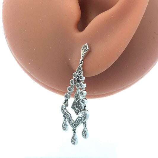 Designer THL 10k White Gold Round Cut Diamond Dangle Chandelier Earrings