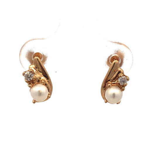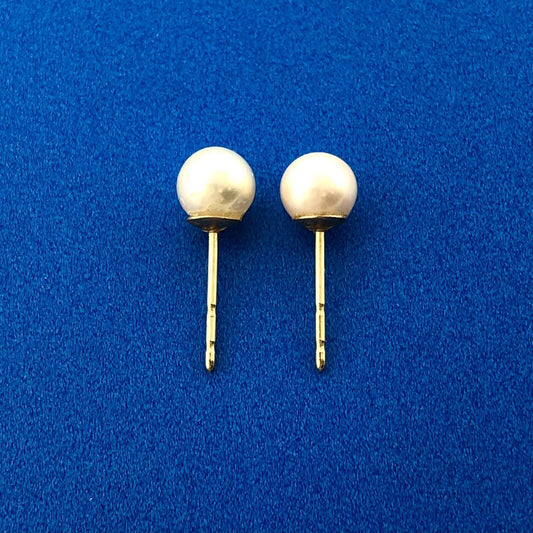 Estate 10K Yellow Gold Pearl Starter Stud Earrings