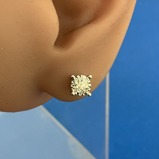 10K Yellow White Gold Pave Diamond Statement Stud Screw Back Earrings