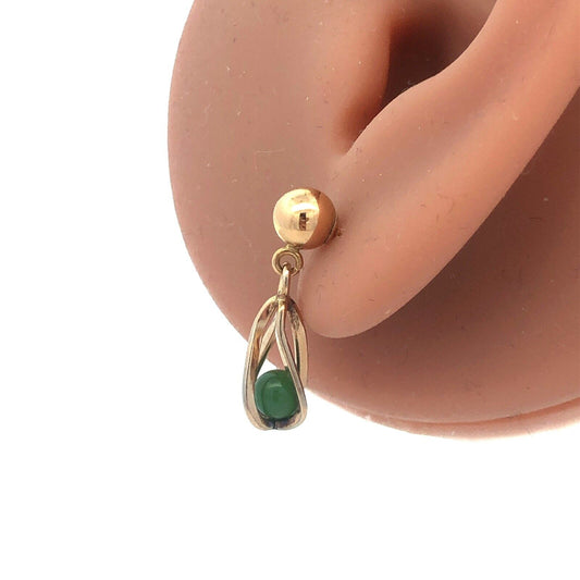 Vintage 10K Yellow Gold Jade Ball Twist Drop Dangle Earrings