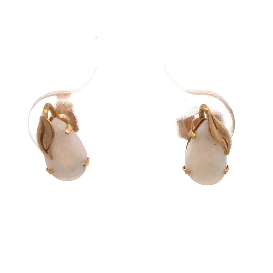 Designer 10K Yellow Gold Pear Shaped Opal Fruit Motif Stud Earrings