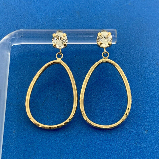 Designer 10K Yellow Gold White Sapphire Hammered Hoop Dangle Stud Earrings