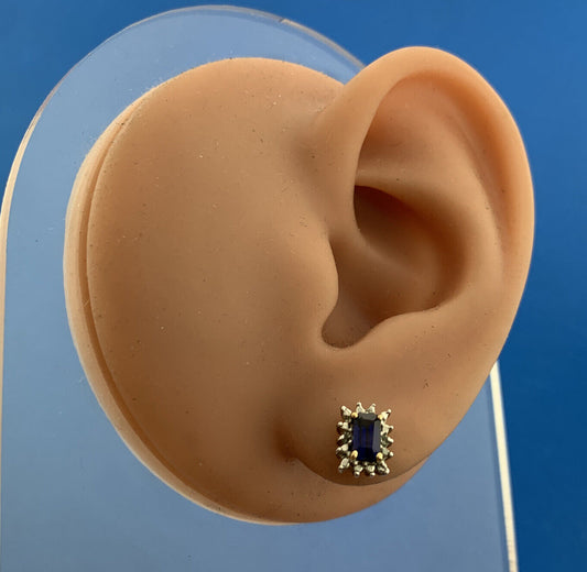 OHM 10K Yellow Gold Sapphire Diamond September Anniversary Stud Earrings