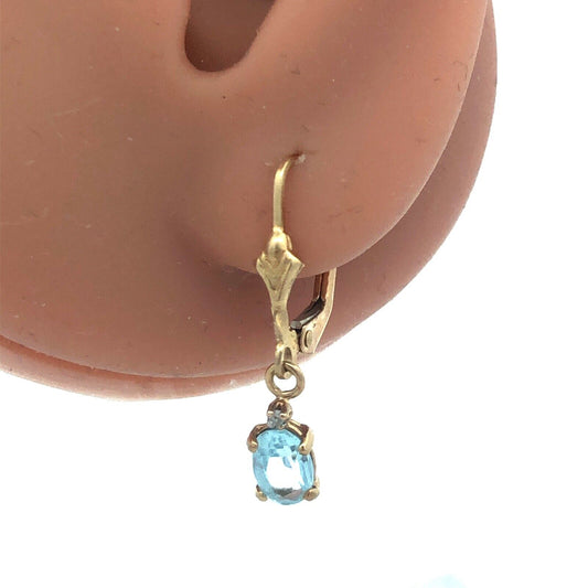 Designer ADL 10K Yellow Gold Oval Blue Topaz December Occasion Dangle Earrings