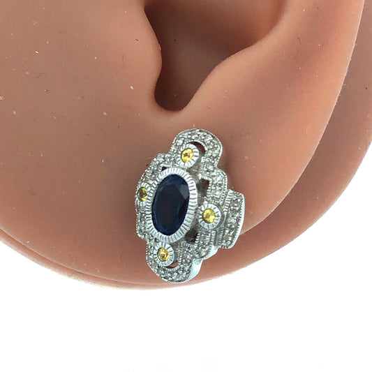 Designer 10K White Gold Oval Tanzanite Yellow Topaz Diamond Stud Earrings