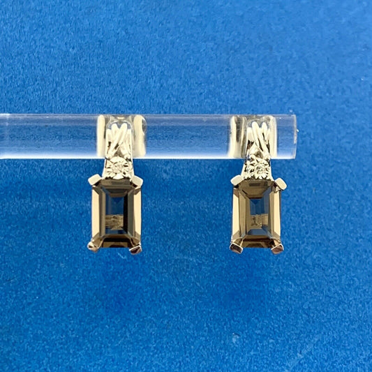 Designer 10K White Gold Rectangle Smoky Quartz Diamond Accented Stud Earrings