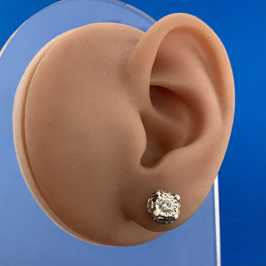 Designer ZEI 10K White Gold Diamond Stud Hidden Halo Elegant Stud Earrings