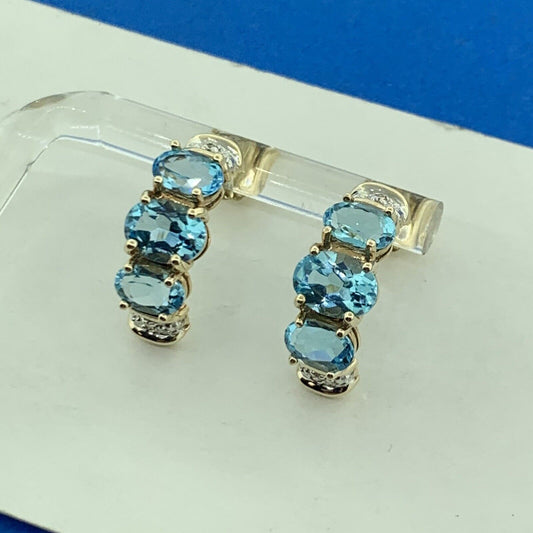 Designer 10K Yellow Gold Oval Blue Topaz Diamond Accented Half Hoop Earrings