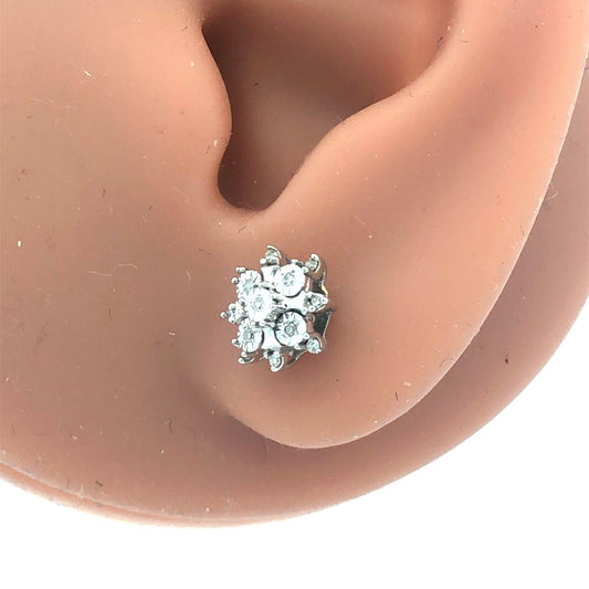 Designer SUN 10K White Gold Diamond Floral Cluster Stud Earrings New With Tags