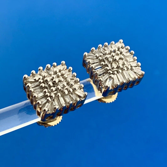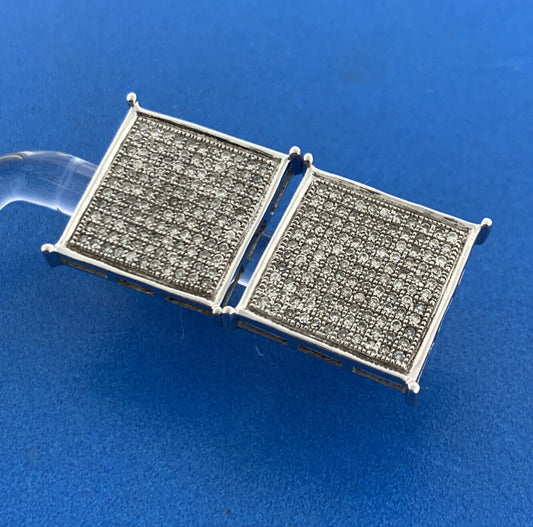 Gorgeous 10k White Gold Round Cut Pave Diamond Square Screw-back Stud Earrings