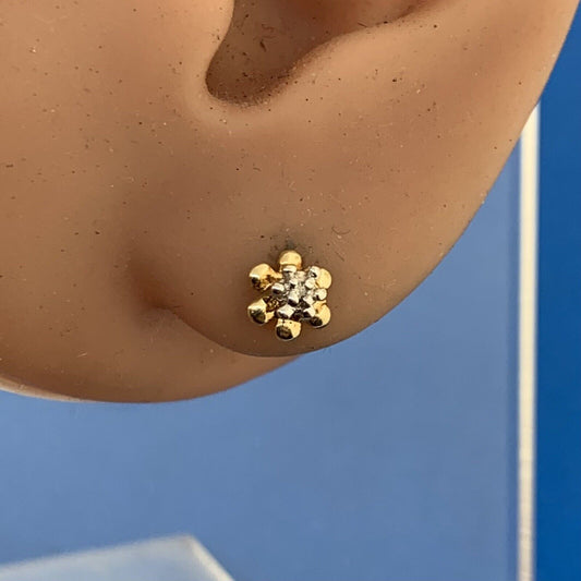 Retro JCM 10K Yellow White Gold Diamond Accent Buttercup Starter Stud Earrings