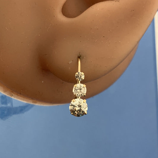 Designer 10K Yellow Gold Cubic Zirconia Petite Dangle Leverback Earrings