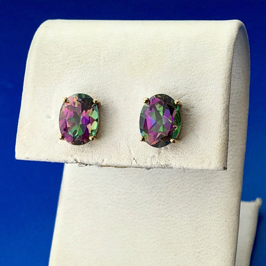 Vintage Designer TJC 10K Yellow Gold Oval Mystic Topaz Anniversary Stud Earrings