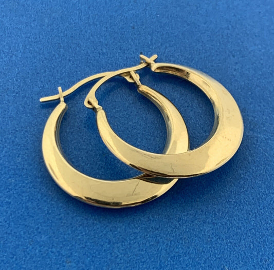 Designer RL 10K Yellow Gold Polished Tapered Elegant Hoop Earrings