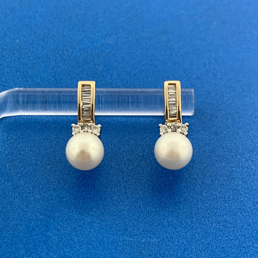 10K Yellow Gold Pearl Diamond June Bridal Anniversary Drop Stud Earrings