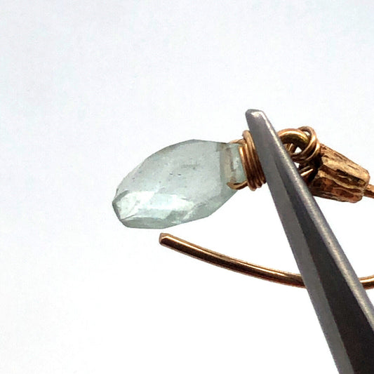 14k Yellow Gold Aquamarine Calming Soothing Dangle Hook Earrings