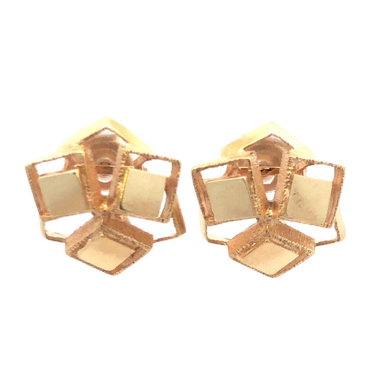 Designer 14K Yellow Gold Modernist Geometric Square Statement Stud Earrings