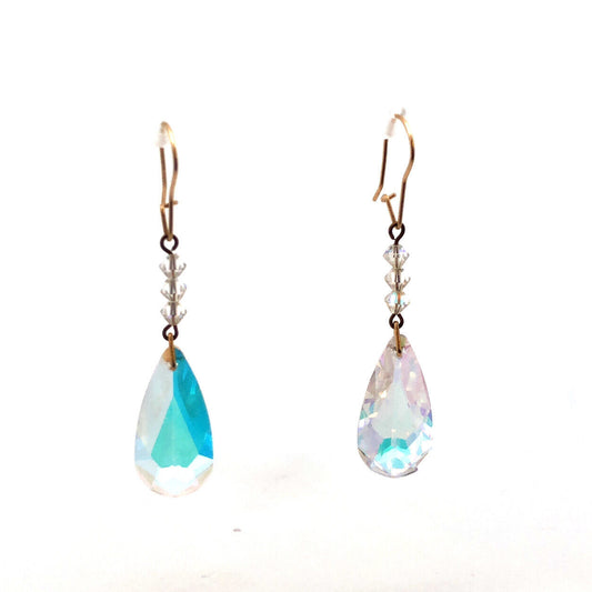 14K Yellow Gold Faceted Crystal Bead Dangle Hook Earrings