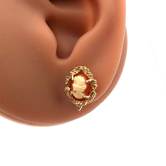 Designer KBN 14K Yellow Gold Oval Carved Cameo Grape & Leaf Stud Earrings