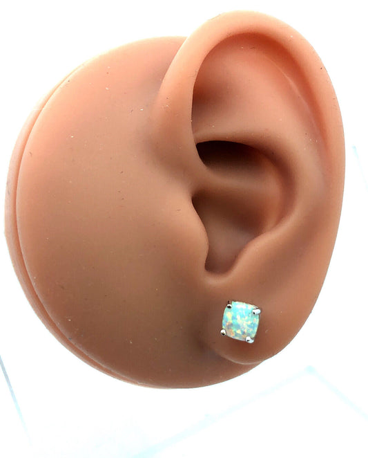 10K White Gold Square Opal Cabochon Healing Stud Earrings